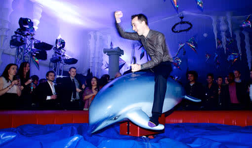 Introducing the newest addition to the rodeo scene, the Rodeo Dolphin! This unique and limited edition attachment is guaranteed to make a splash at any corporate event or party. With a blue cover that mimics the look of a dolphin in water, this rodeo attachment brings a whole new level of fun to your event.