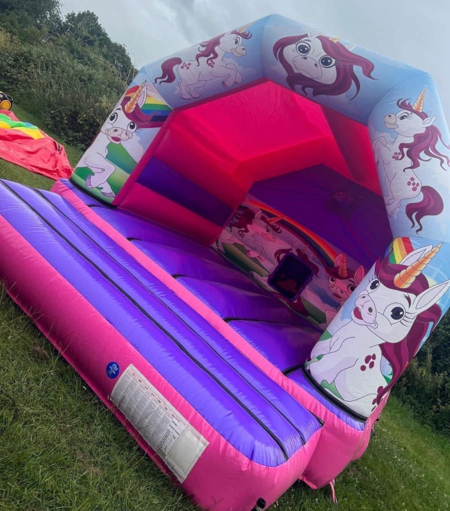 a quintessential staple for any inflatable hire business within a 30-mile radius of Leicestershire. This delightful bouncy castle is designed to fit seamlessly into most back gardens and is equally suited for indoor events, making it an ideal choice for various occasions. The Unicorn 11x15ft is our most sought-after model, perfect for newcomers to the rental industry. We take pride in our dedicated manufacturing facility, which specializes in creating these popular castles, allowing us to offer attractive discounts on bulk orders. Available in an array of vibrant colors and unique artwork options, our Unicorn bouncy castle can be customized to suit any theme. Plus, we maintain a well-stocked inventory for those urgent requests, ensuring you can always meet your clients' needs. With proper care and maintenance, this durable inflatable will provide years of enjoyment. Its versatile size makes it a perfect fit for both outdoor gardens and most indoor venues. Thanks to its manageable weight, a single person can easily set it up and take it down without assistance. Our disco-ready inflatable also features a convenient speaker holding system and a light holder pocket for easy cable management (please note that speakers and lights are not included). The speaker pocket is strategically placed to protect it from small hands while ensuring that the sound resonates beautifully throughout the inflatable. Elevate your event offerings with our Unicorn 11x15ft A-frame bouncy castle and watch your business thrive!