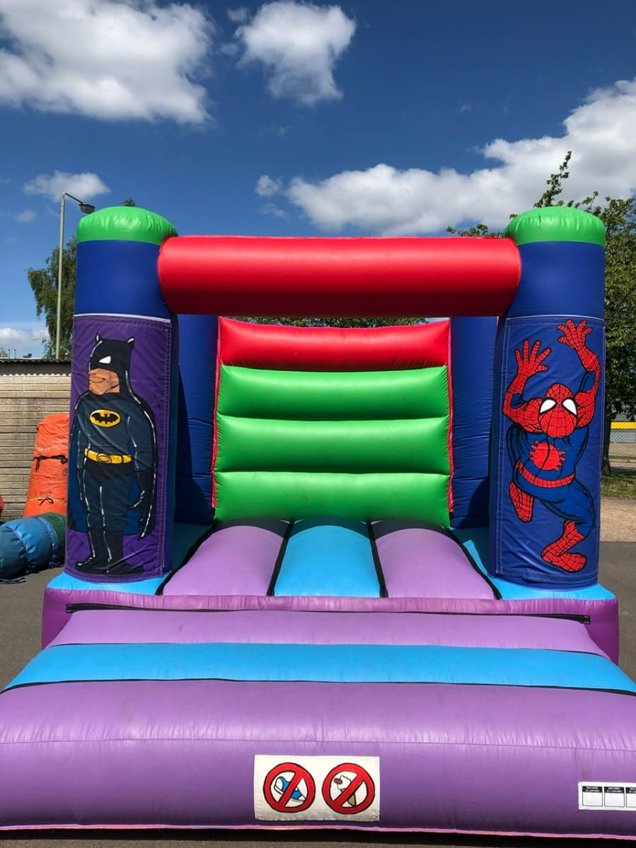 Introducing the ultimate inflatable adventure for your little ones - the multi-themed 12 x 12 bouncy castle! With a vibrant mix of purple and blue and interchangeable Velcro characters, this bouncy castle is sure to capture your child's imagination and keep them entertained for hours on end.