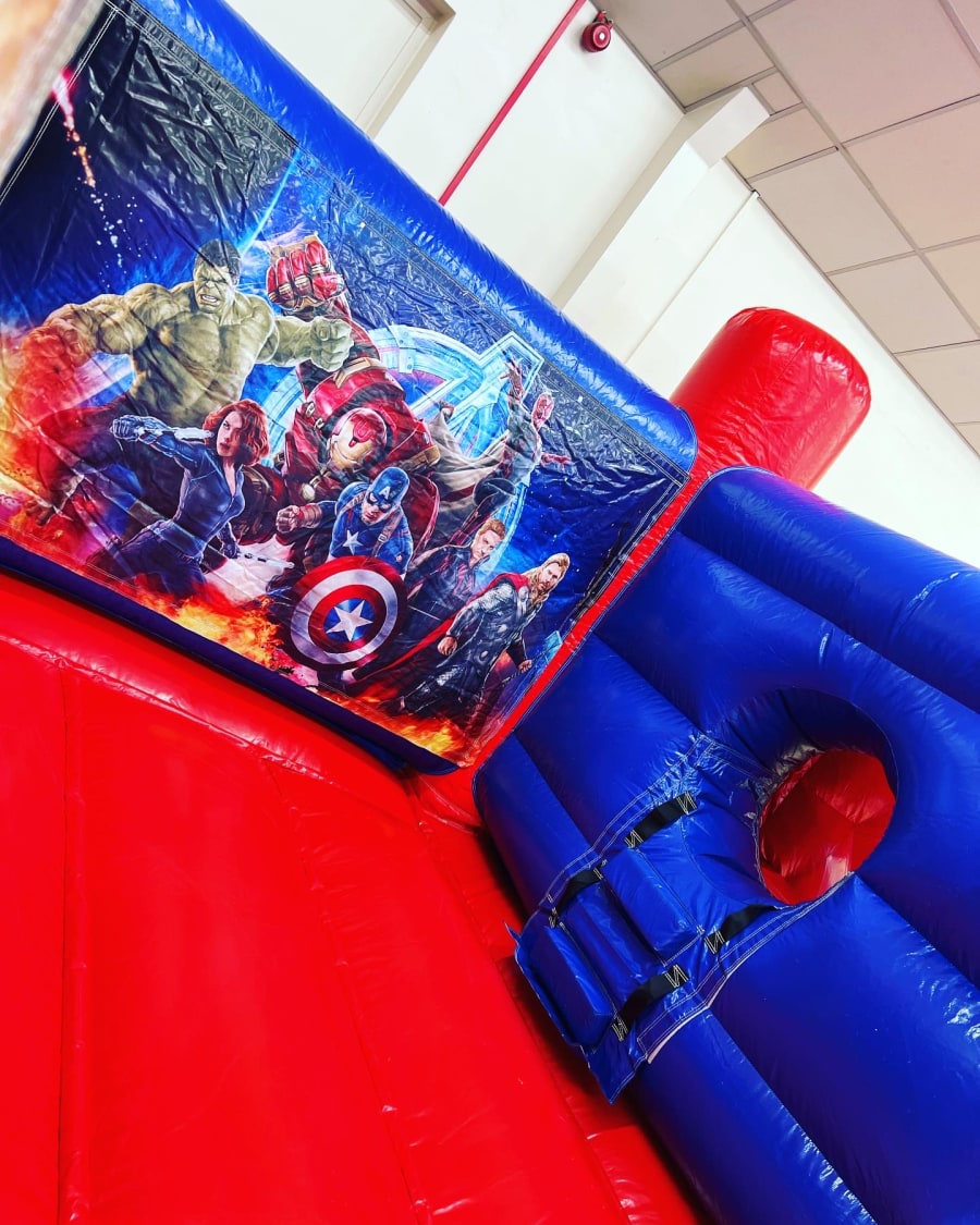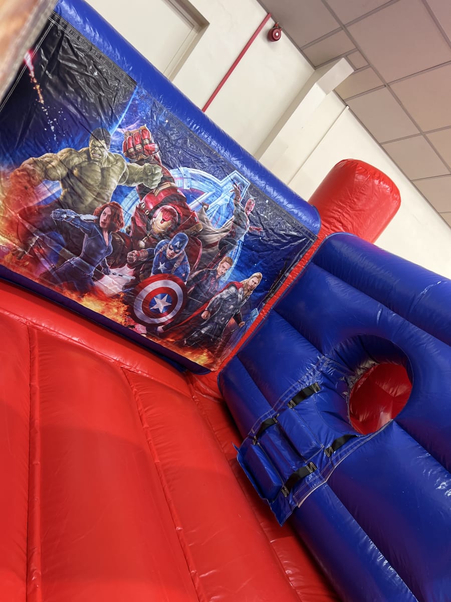 The slide is the perfect addition to this bouncy castle, providing an extra level of excitement and thrills. Your little ones can slide down to the bottom and bounce back up to the top with ease, feeling like they're part of the Avengers team.